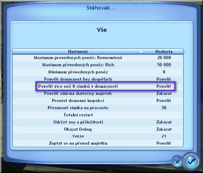 ◘ Změnit - umožní změnit vlastnosti simíka, lze přidat více než 5 vlastností